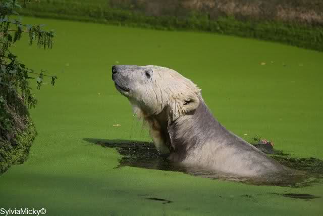 Heute morgen war der Zoo noch menschenleer. Knut lag unter seinem Baum, um sich dann ins Wasser zu begeben und ordentlich rumzutoben.