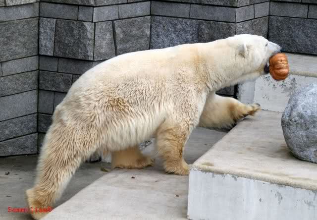 Onkel Kühn hatte (so glaube ich) ein bisschen Mitleid und war den Kürbis so, dass Knut leider nicht ins Wasser musste. Pfötchenarbeit ist eben alles. Oder gelernt ist eben doch gelernt.