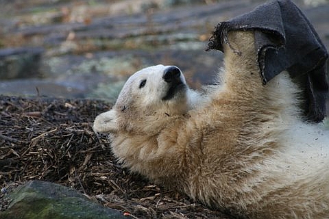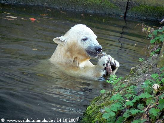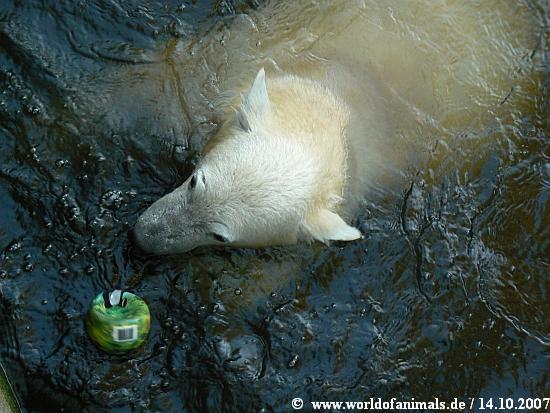 …Im Gegensatz zu ihm hat Hudson, ein anderer Eisbär, viele bunte, lustige Spielzeuge. Die bestehen alle aus leichtem Material. Erschlagen (und ertrinken) wird man eher von den schweren Dingen wie z.B. von dem schweren Baumstamm im Knuts Wasserbecken.