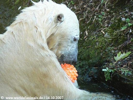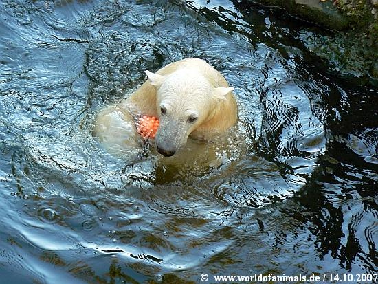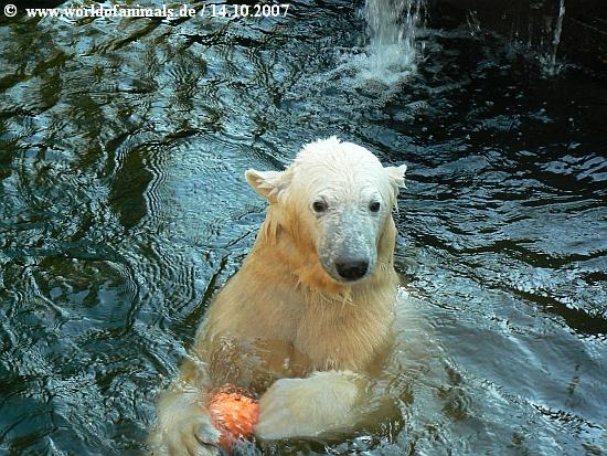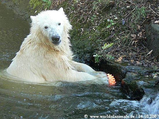 Knut in the water...pictures from sunday afternoon, October 14th, 2007. Playing with his toys.