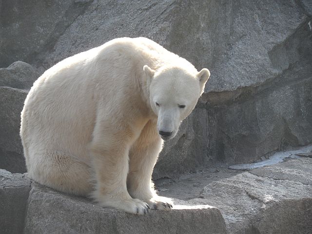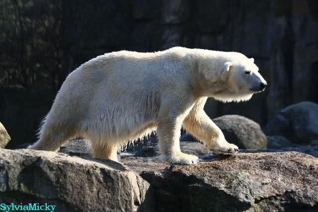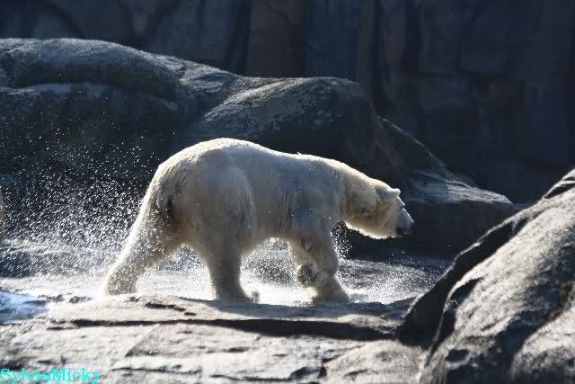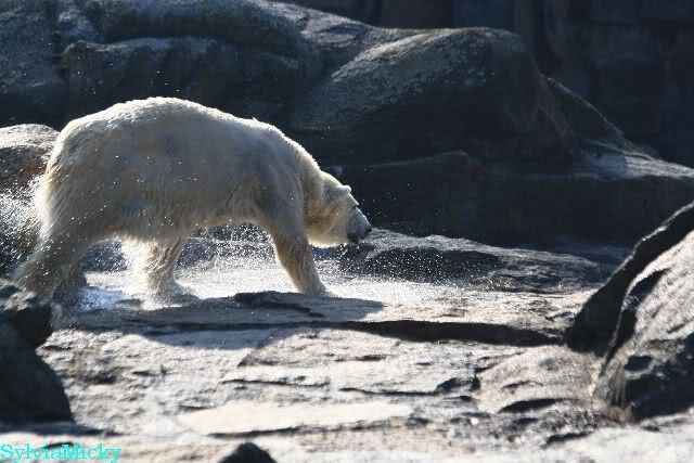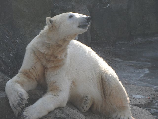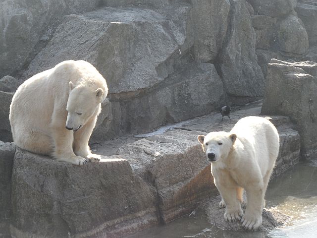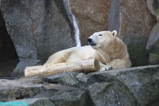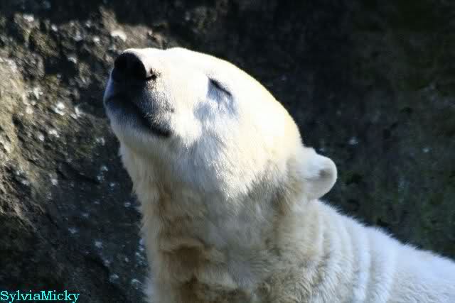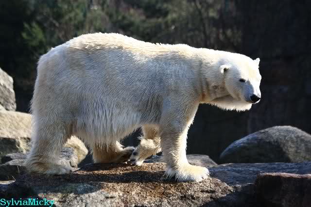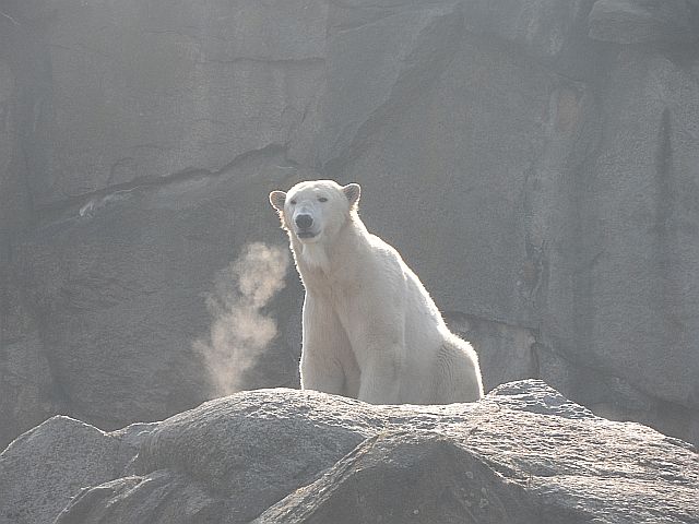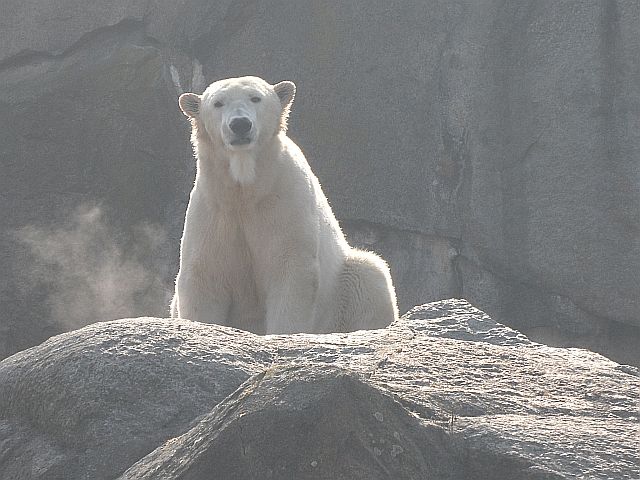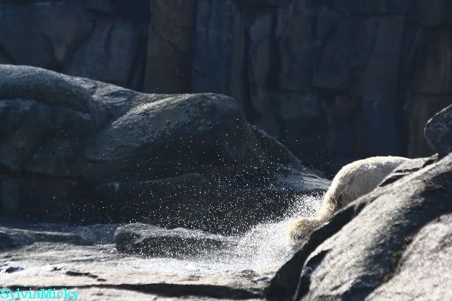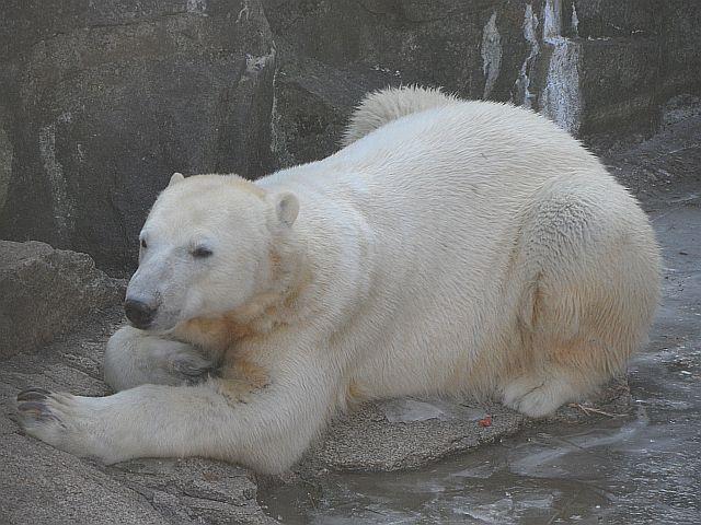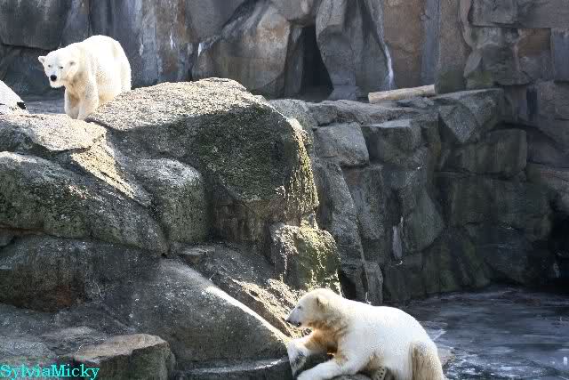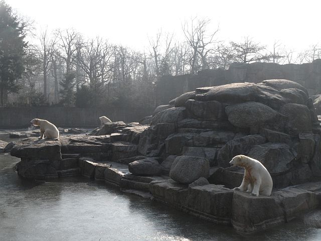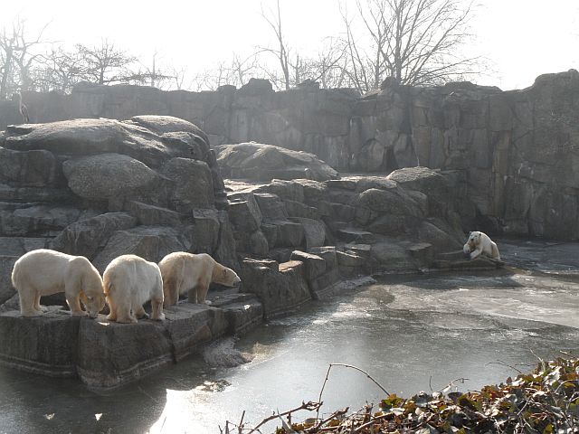 Aber das wichtigste ist Knut. In den zwei Stunden am Nachmittag hat er die Anlage für sich alleine. Er schnüffelt alles ab. Meistens vergnügt er sich im Wasser, spielt mit allem was er finden kann und betrachtet die Besucher. Sehr schade, daß ihm heute die Möglichkeit genommen wurde.