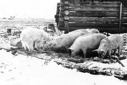 Aber lasst mich eine Frage stellen: Wie kann es sein, dass die Russen anfingen die Eisbären in so unbesorgter Weise mit Kondensmilch zu füttern, wenn sie doch normalerweise als Gefahr für die Polarstationen galten und sofort umgebracht wurden wenn sie in Siedlungen auftauchten (siehe hier auch wenn das nicht über Chukotka ist)