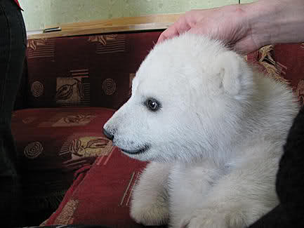 Moskau. Michail Fomitschew. Die kleine Eisbärenwaise, die Ende März unweit einer der Rentierzüchter-Siedlungen Tschukotkas gefunden wurde, kam in den Moskauer Zoo, teilt der Pressedienst des WWF Russlands mit.