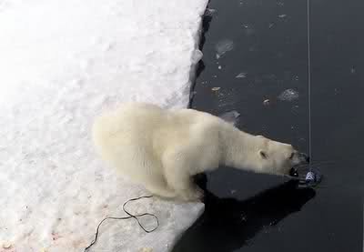 Das Klima ist dort sehr hart und manchmal kann das Wetter im Winter so grimmig sein, daß die Temperaturen minus 40°C betragen (dasselbe für Fahrenheit, - 40F) und so die weißen Bären und ihre Kinder anfangen zu hungern und zu frieren, obwohl sie eigentlich mit ihrem dicken Fell nicht frieren sollten.