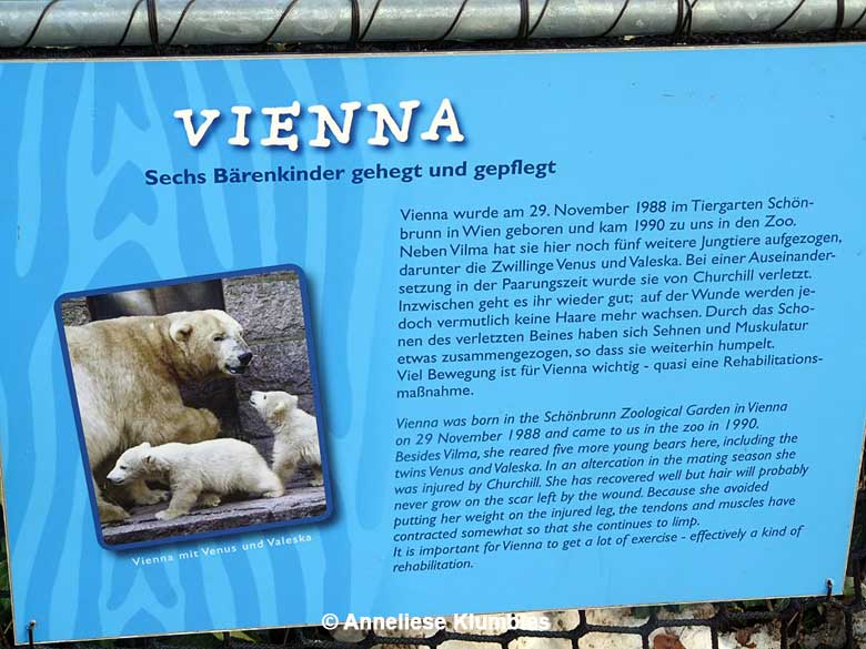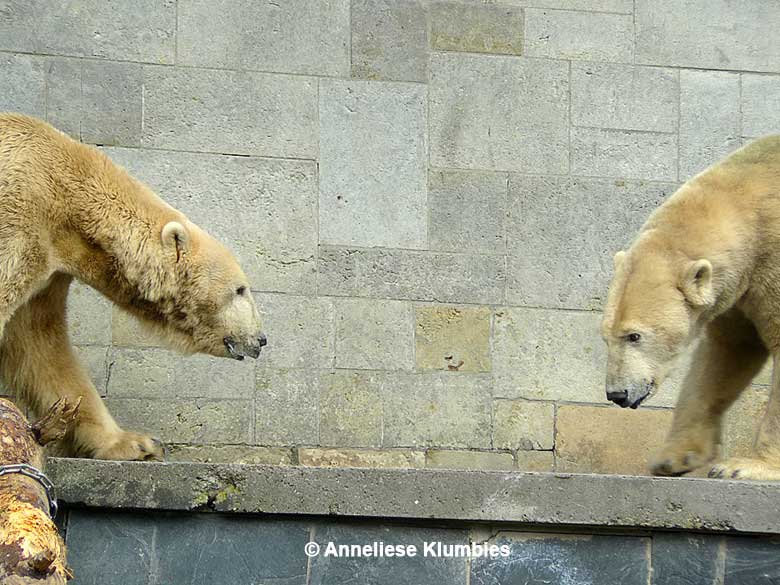 Auch Vienna und Vilma sind ausgesprochen schöne Eisbärinnen. Sie vertreiben sich die Zeit mit anregendem Streit um das Futter und um die interessantesten Plätze im Gehege. Sie tun sich nicht wirklich etwas.