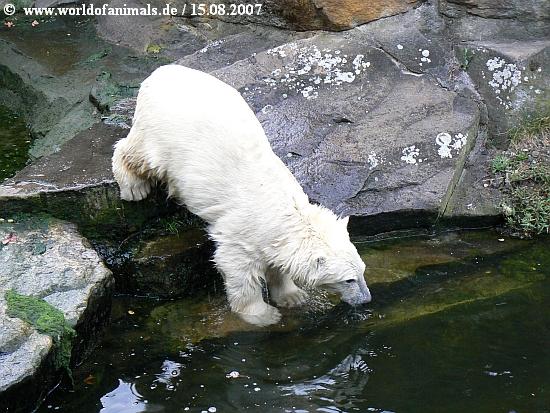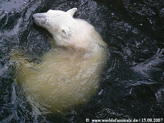 Da hab ich aber auch erleichtert aufgeatmet, als ich durch Deinen wieder so knutnahen Bericht erfuhr, dass der kleine Bär nun Spielzeug hat, lieber Harmuth. Mir bereitet der Gedanke an eingeschlossene Tiere eh immer ein bisserl Probleme, obwohl ich natürlich auch weiss, welch grosse Dienste die Zoos erweisen. Dennoch ist es sehr gut zu wissen, dass Knut sich nun mit etwas beschäftigen kann! Sicherlich wird man sich an Land auch noch etwas für ihn einfallen lassen. Herzlichen Dank für diese herrlichen Wasserbilder!