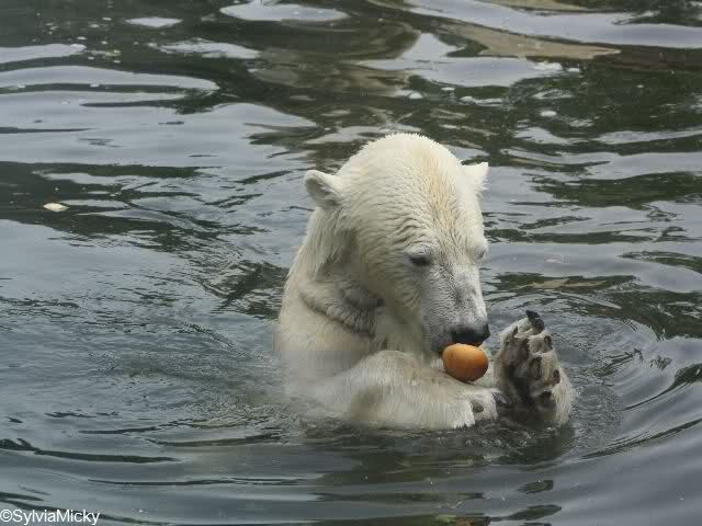 Heute war Kindergeburtstag im Zoo. Die Großen bekamen am Nachmittag Brötchen von den Kindern. Nur Katjuscha wollte nicht ins Wasser. Also ging sie leer aus.