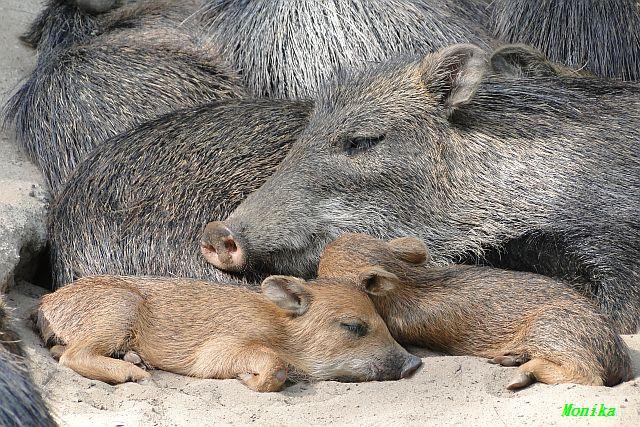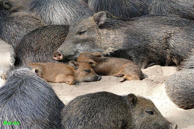 Den Pekaris scheint die Hitze nichts auszumachen. Sie lagen auch heute auf- und übereinander.