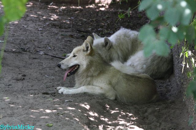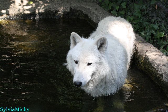 Wasserspiele heute vor dem Frühstück. Tosca und Nancy toben ausgelassen im Wasser während Katjuscha im schattigen Eingang zur ihrer Höhle liegt.