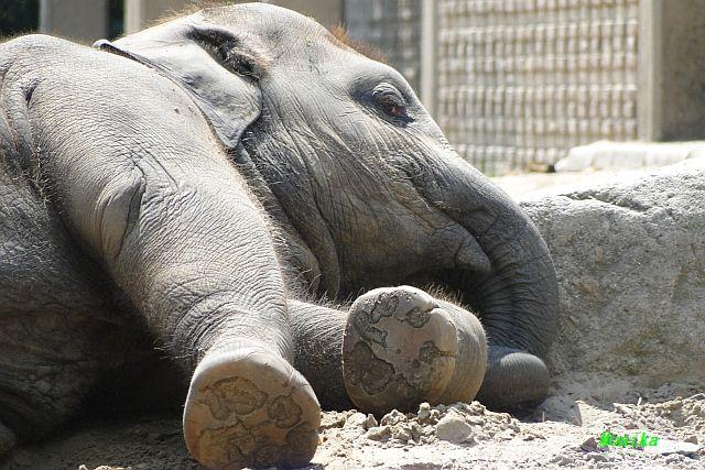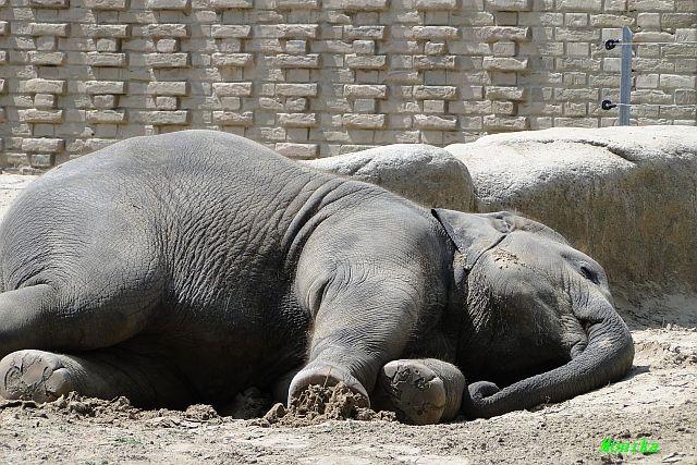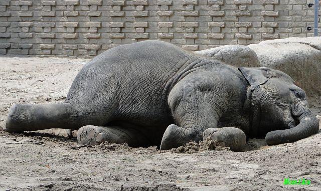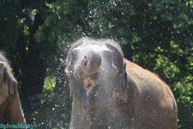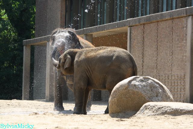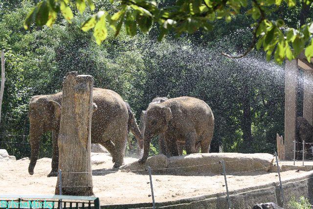 Bei den Elefanten, die Hitze gewöhnt sind, wurde auf dem Dach ein Rasensprenger installiert. Die Dusche wurde auch gerne genutzt.