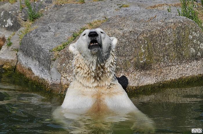 Ich stelle den Bericht über medizinisches Tiertraining hier ein, denn darin sind so wunderbar erfrischende Eisbär-Fotos.