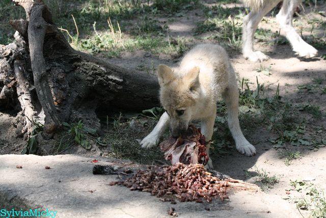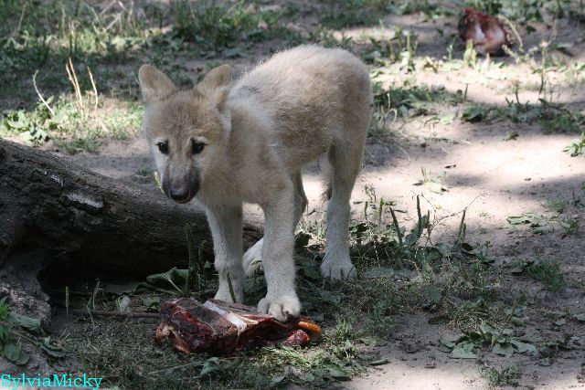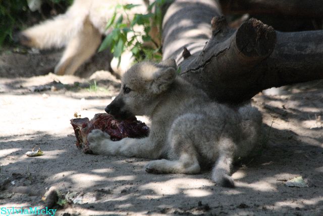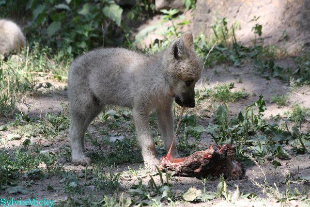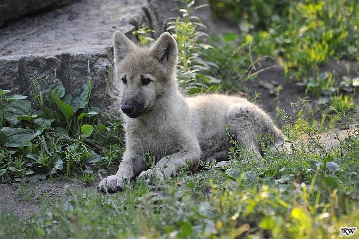 Ein Wölfchen wachte kurz auf. Die anderen lagen verstreut im Gras