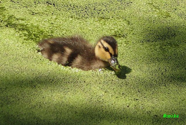 Dieses kleine Entenküken schwimmt mit ihren Geschwistern im Teich der Warzenschweine, dicht neben Knut`s Gehege. Wollen wir hoffen, dass sie auch dort bleiben.