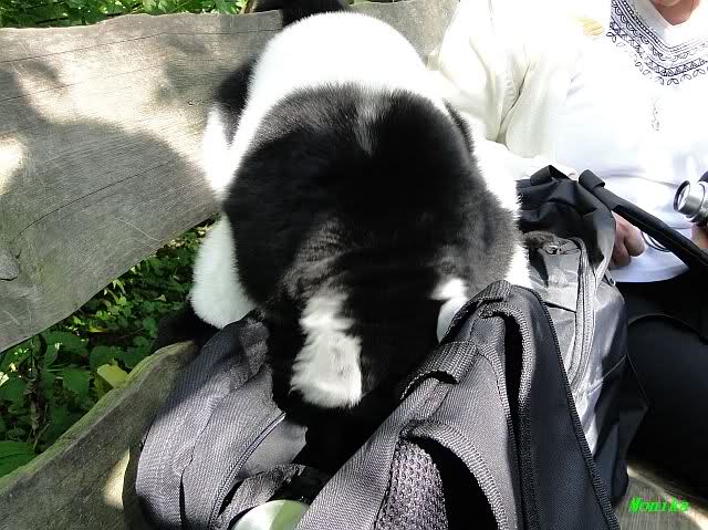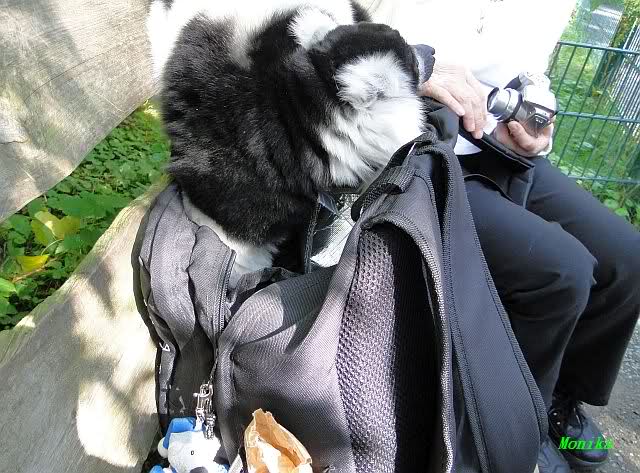 Dann interessierte er sich sehr für den Inhalt meines Rucksacks. Er steckte den Kopf ganz tief hinein und wühlte darin.