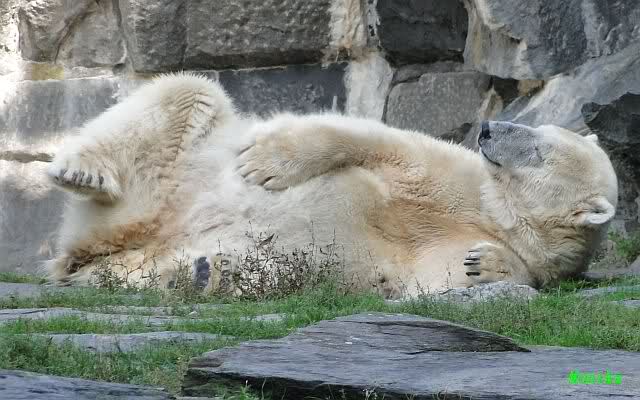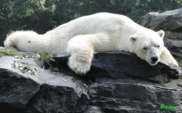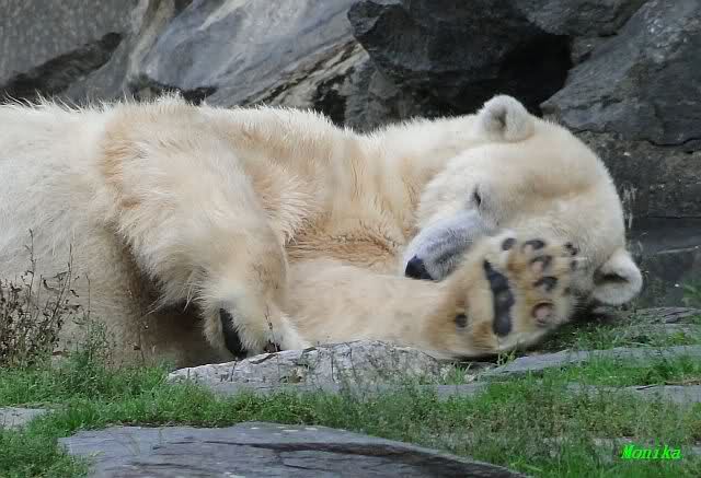 Am Nachmittag schliefen beide. Troll lag versteckt hinter einem Stein.
