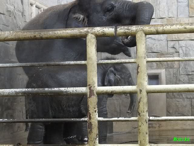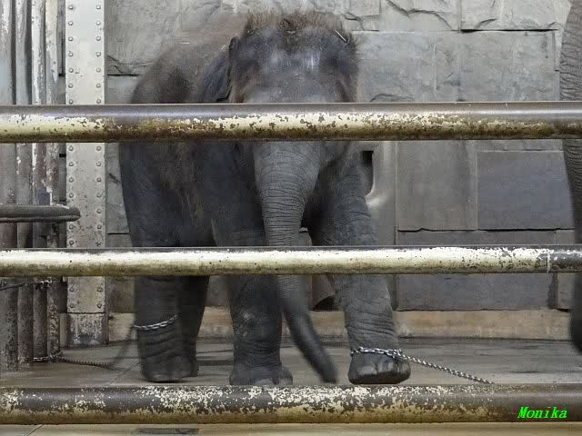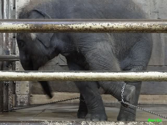 Mit Entsezen habe ich gesehen, dass die Elefanten im Tierpark immer noch an zwei Beinen angekettet sind. Sie können nicht mal ein bis zwei Schritte tun. Unfaßbar! Sogar der erst 2-jährige Elefant "Thuza" war angekettet. Man sah, dass er sich total unwohl fühlte und hob immer wieder das hintere Bein und wollte die Kette abschütteln.