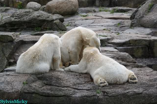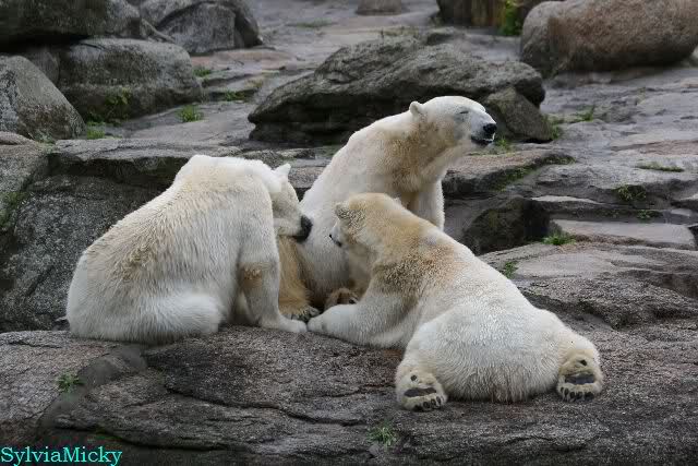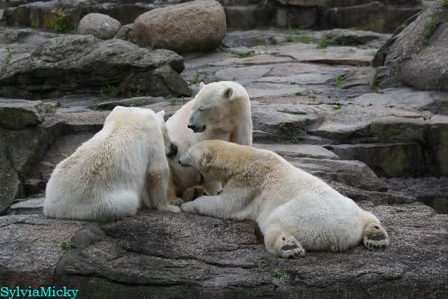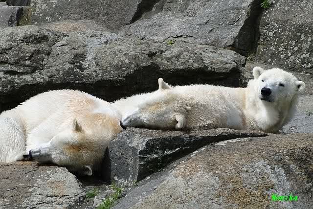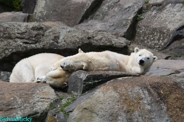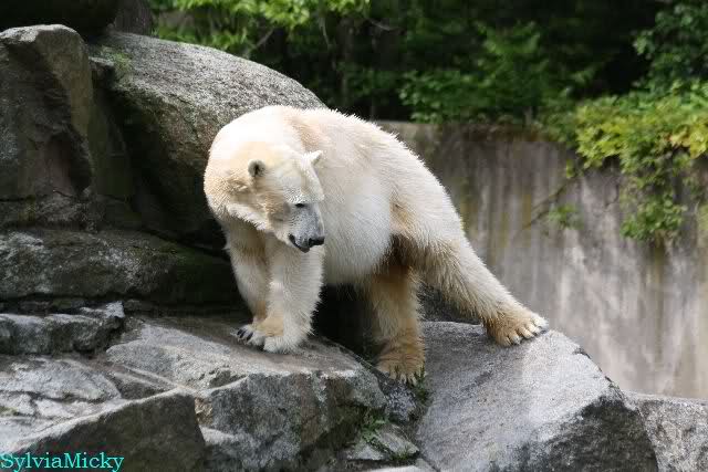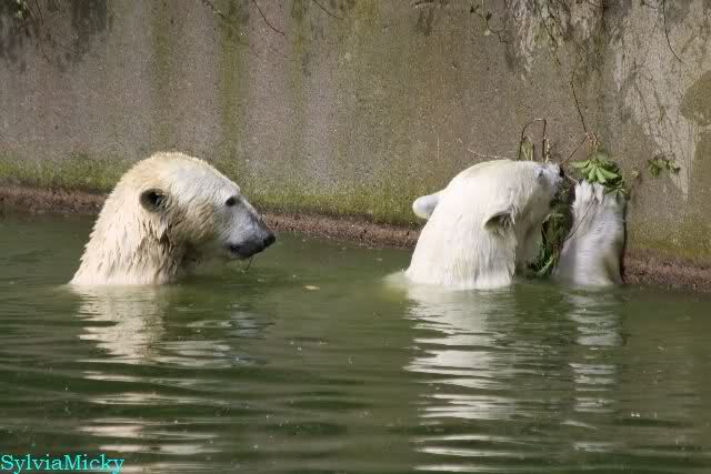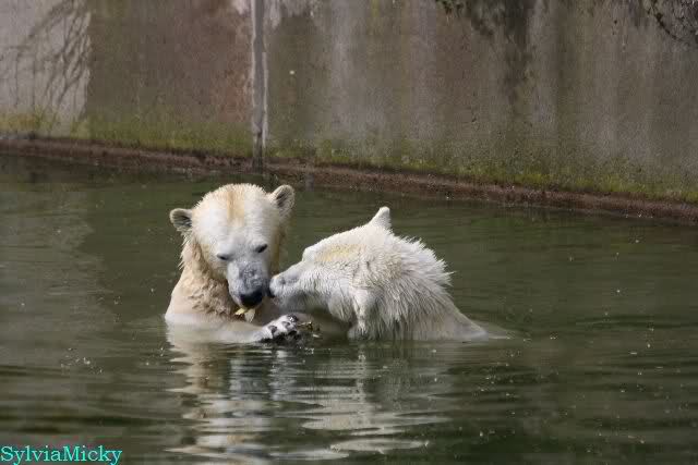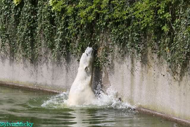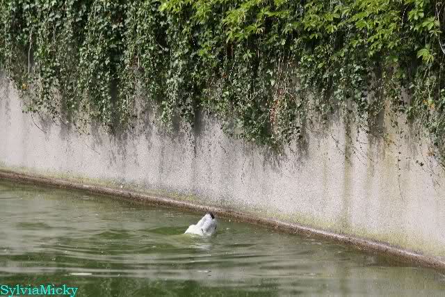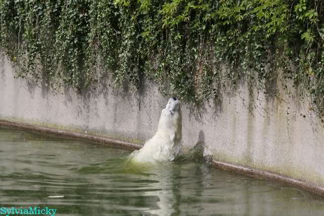 Heute am Nachmittag lernte ich ein nettes Paar aus Frankfurt/M. am Gehege der Großen kennen. Natürlich rätselten sie, wer Knut sei. Ich zeigte ihnen den Weg.