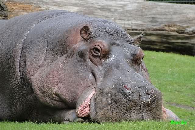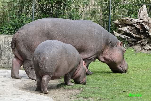 Die Hippos beim grasen.