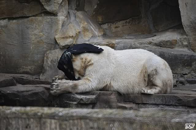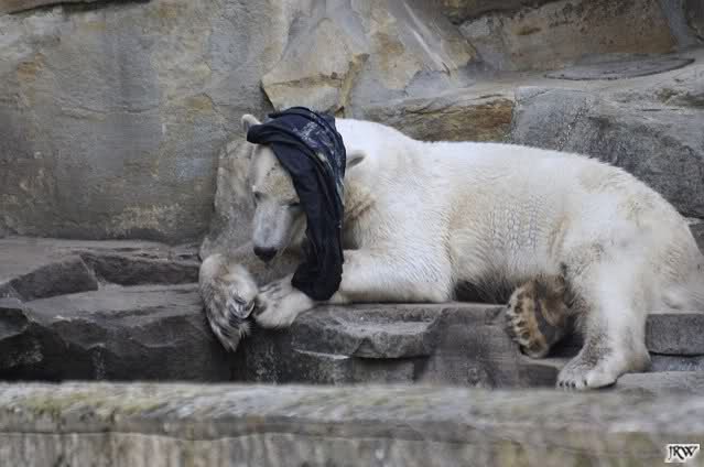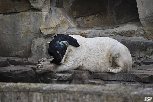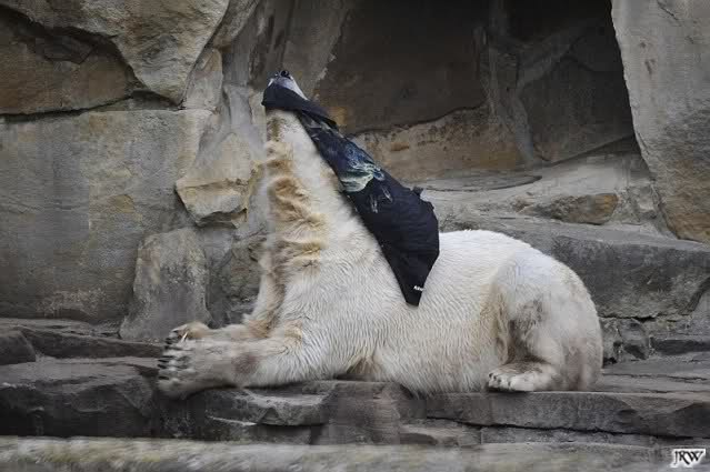 Ich habe hochinteressante Informationen! Nach aufwändigen Recherchen bin ich endlich dahinter gekommen, warum Knut tagsüber ruht. Er hat einen ( unbezahlten ) Nebenjob!