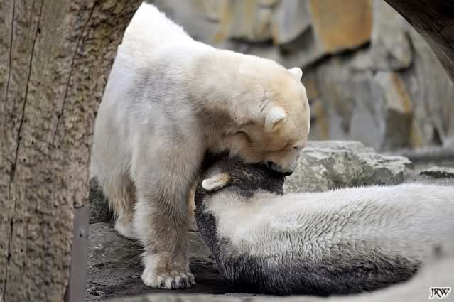 Das sind ja wieder Fotos zum weich werden ... Knut und Giovannna am Schmusen ... Knuts Ausdruck wieder einmalig. Danke fürs Posten und für die erfrischenden Kommentare dazu.
