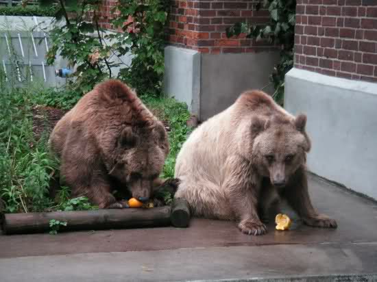 Später zogen die beiden Bärinnen aufs Altenteil in die verwaiste Tigeranlage, wo sie die Ruhe und den engen Kontakt zu den Pflegern genossen. Nach wie vor waren Pudding, Kuchen und Joghurt ihre Lieblingsspeisen, von denen sie nicht genug bekommen konnten.