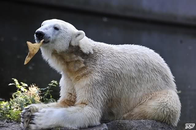 Zum Thema Fütterung möchte ich sagen, dass in München zum Beispiel, die Eisbären nicht öffentlich gefüttert werden. Das hat den Vorteil, dass sie nicht schon lange vor den Fütterungszeiten unruhig hin- und herlaufen oder vor der Höhle sitzen und warten.