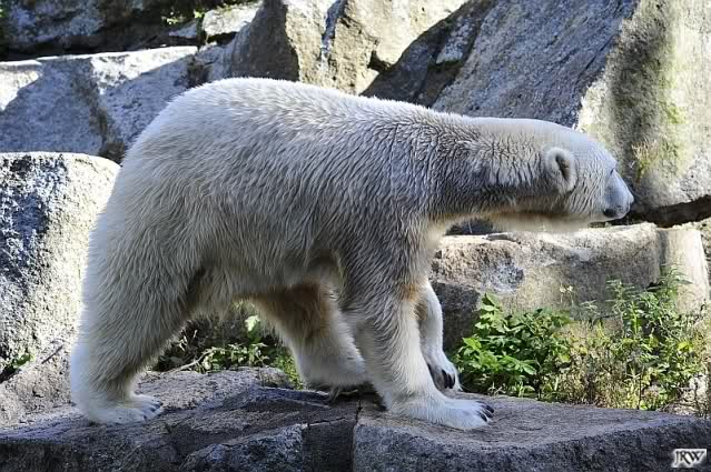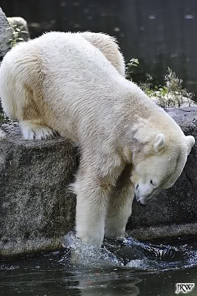 Knut sah vom Felsen aus, wie Tosca das ganze Futter holte, da tat er mir unendlich leid. Hat er doch gerade erst vor wenigen Tagen Freude daran gefunden, die Lars`Insel für sich zu entdecken. Und nun? Wo ist sein Futterplatz? Ich glaube, Knut versteht die Welt nicht mehr. er war auch heute nicht im Wasser. Ich mag gar nicht daran denken, wie es sein wird, wenn Nancy und Katjuscha noch dazu kommen, tritt er dann in den Hungerstreik? Hoffentlich findet er bald wieder seine innere Ruhe.