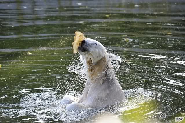 Nun mußte sich Knut doch noch nass machen und hatte dann viel Spaß!