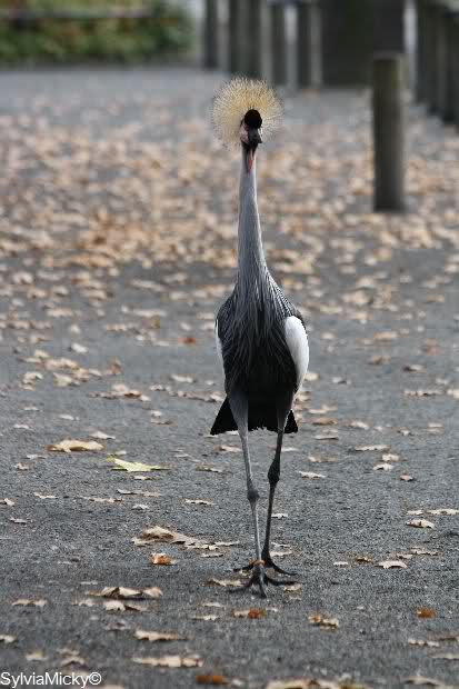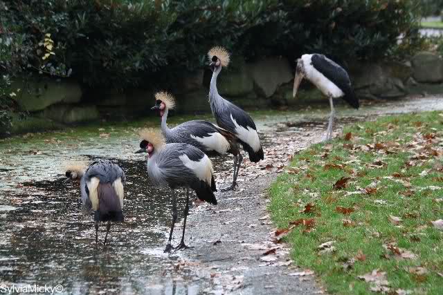 Die anderen Kraniche waren sehr aufgeregt und versuchten den Ausreißer mit lauten Rufen zurück zu rufen. Nur dem Marabu war's egal.