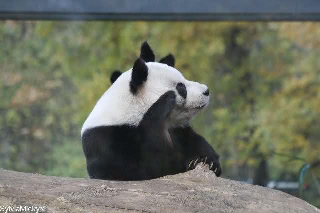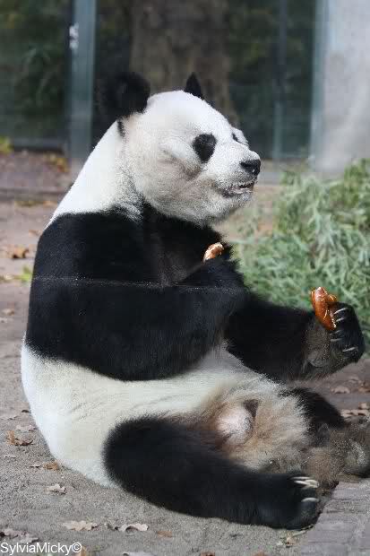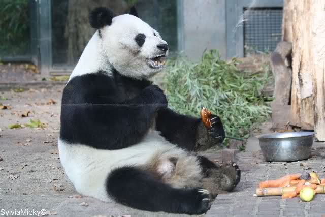 danke für die Bilder von Bao Bao.Ich habe ihn vorgestern Abend gesehen, und mir fiel auch nichts besonderes auf. Da war er gerade beim ABendessen. Er hat es sich schmecken lassen.