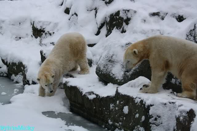 Heute war "Tosca und Knut-Tag". Wir haben sie oft schon kurz zusammen gesehen. Heute wollten sie garnicht aufhören. Wenn sie ein paar Schritte machte, ging er hinterher und umgekehrt.