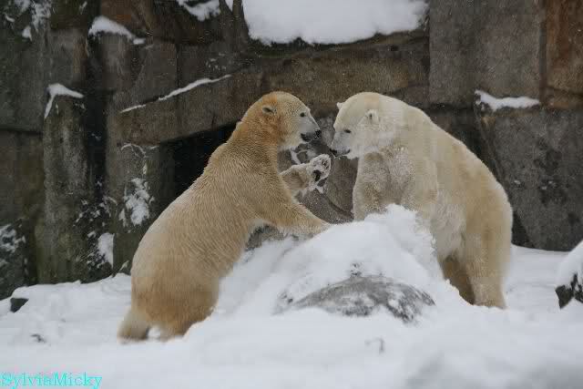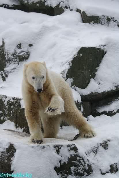 Sylvia, nette Bilder von den spielenden Bären. Als wir in den Zoo kamen, trafen wir zwei Knutfreundinnen, die schon gehen mussten. Eine strahlte ganz besonders. Später erfuhr ich weshalb. Als sie morgens zum Gehege kam, begrüßte sie Knut und winkte ihm zu. ER WINKTE ZURÜCK! Marion, strahlst Du noch immer?
