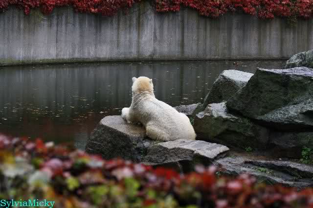 In der Knutitis hat Petra Bilder vom Nachmittag eingestellt. Nachdem die Bärinnen weg waren, ist er ins Wasser gegangen. Ich hoffe nicht, daß Knut von 12.00(wo ich gegangen bin) bis ca. 16.00 (da kommen die drei üblicherweise rein) auf der Ecke gelegen hat.