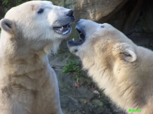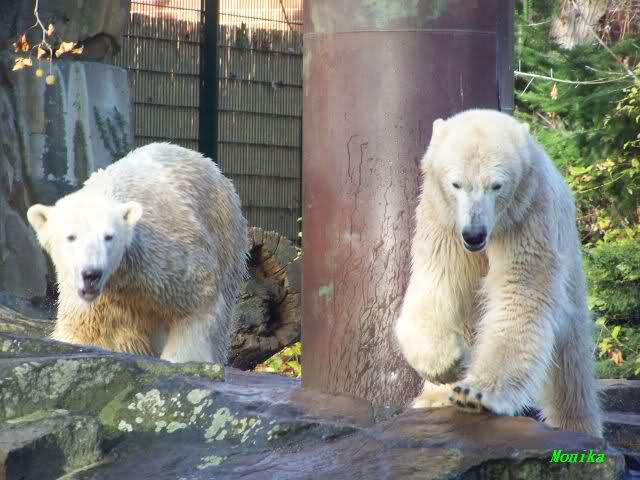 Doris, the fact that Knut finally decided to play with Gianna is because she promised him that he may keep his beard. Actually, she likes that beard, regardless of some other people's wishes. But they are polar bears and do have their own wishes. So, unfortunately, bad luck for you. But neverhteless, I hope that you are feeling better today and that the fever is gone. Remember that next weekend you MUST make "acte de présence" for his birthday.