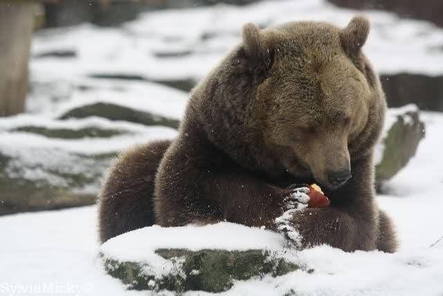 Siddy fand noch eine Apfel im Schnee