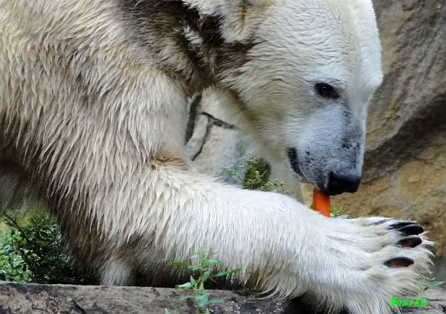 Monika, Dank für die wieder herrlichen Fotos von dem Eisbärjungen. Er sieht nicht nur so aus wie ein Eisbärenkind, er ist es ja noch. Gerade mal 3 Jahre und 9 Monate.