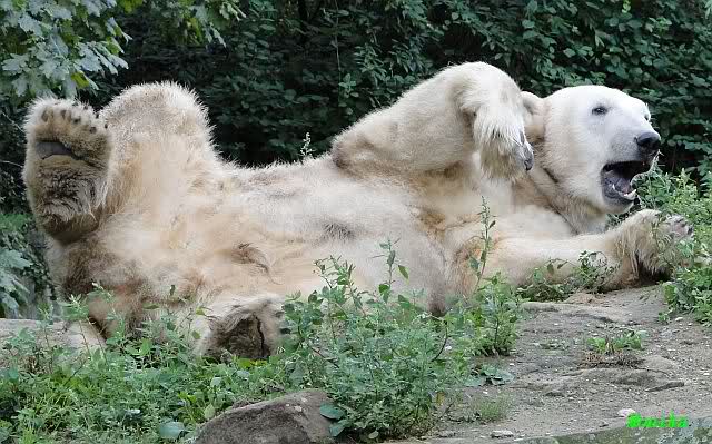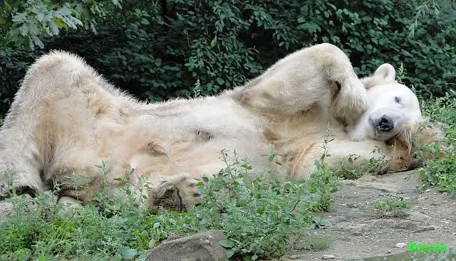 Nach einer gefühlten Endloszeit war ich heute im Zoo. Es hat heute viel in Berlin geregnet. Über Knut gibt es nicht so viel zu erzählen. Er schlief am Mittag und fing erst kurz vor der Fütterung an zu laufen.