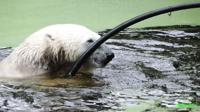 Nachdem Knut ausgiebig bis mittags geschlafen hat, spielte er wieder im Wasser bis zur Fütterung.