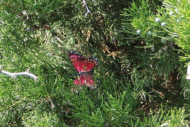 Der kleine Schmetterling liegt schon einige Zeit im Gebüsch des alten Geheges.