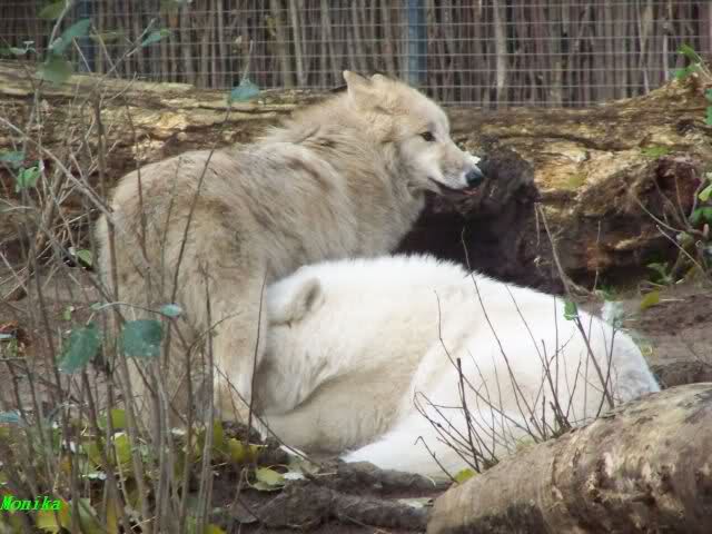 Diese kleine Wölfin traut sich jetzt jeden Tag heraus. Die andere kommt erst wenn es dunkel ist. Eine süße kleine Maus! Falco und Pelle scheinen sich nach den Rangkämpfen geeinigt zu haben. Pelle mimt zur Zeit den Alpha-Wolf. Das Auge von Falco sieht schon viel besser aus.