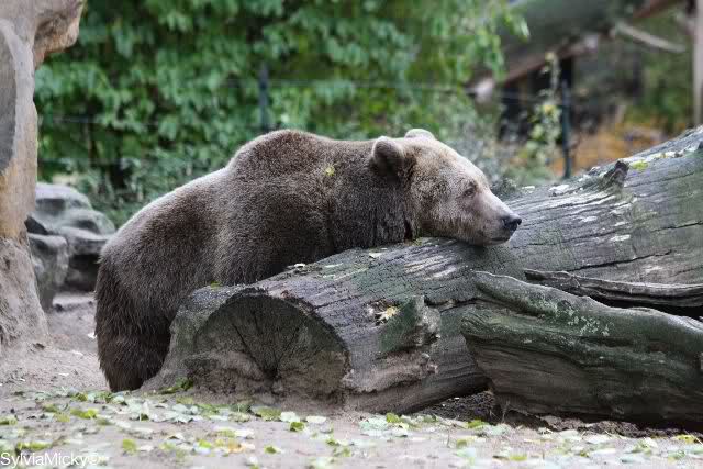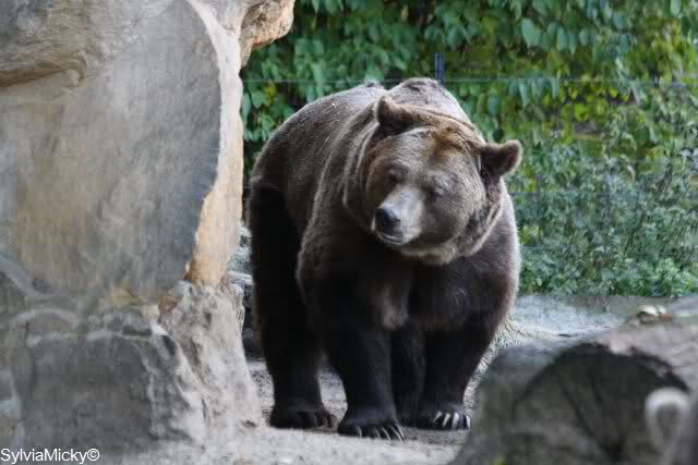 Auch Bernie und Petzi warteten vergebens auf ihr Futter. Die Begründung: die Bären wären jetzt nicht sehr hungrig und würden nicht mehr in die Höhle gehen wenn man sie Nachmittag füttere. Somit werden sie hinter den Kulissen gefüttert wenn Jana herauskommt. Bernie war herausgekommen und wartete, Petzi ebenfalls. Es dauerte nicht allzu lange und Bernie verschwand wieder nach drinnen. Siddy soll sich eingebuddelt haben.