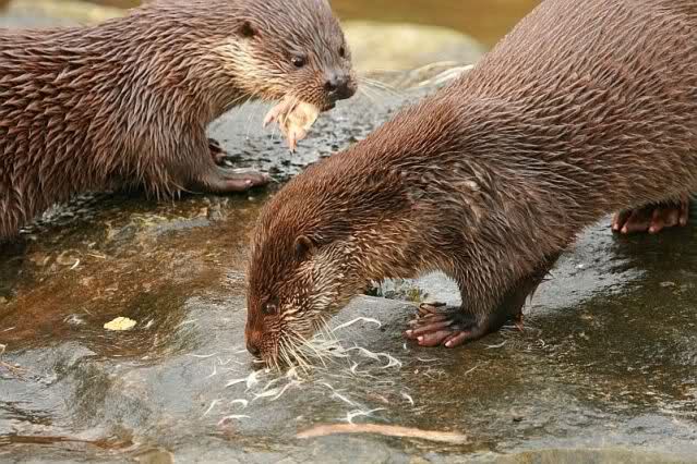 Familie Patschel von den Fischottern ist ebenfalls noch beim Abendessen