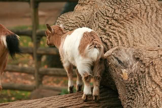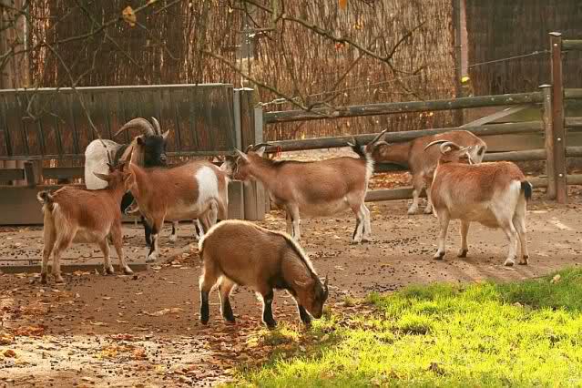 Die Ziegenfamilie wartete vor dem Tor auf Einlass