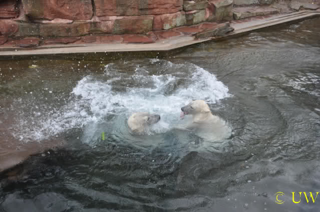Im Anschluss an die Fütterung tobten die beiden im Wasser herum