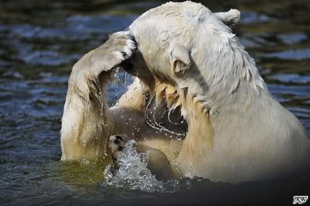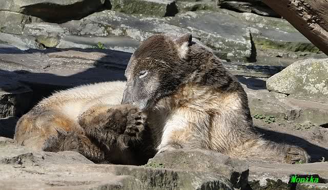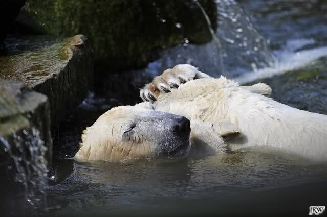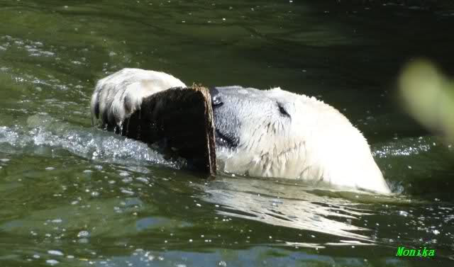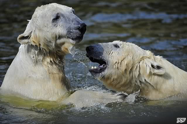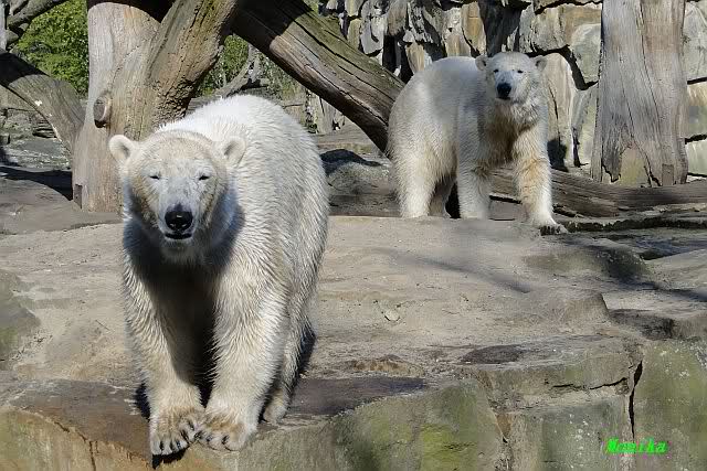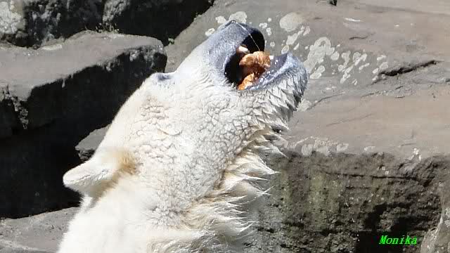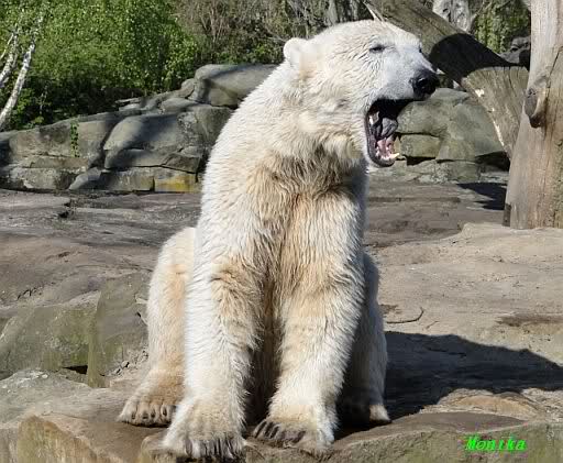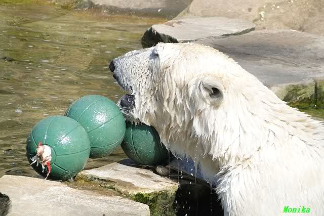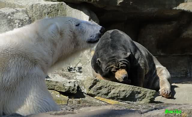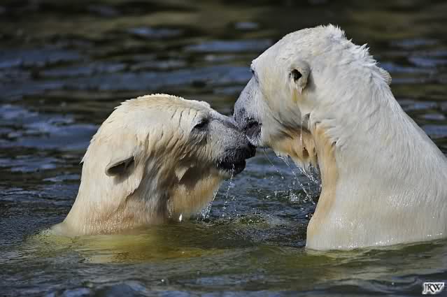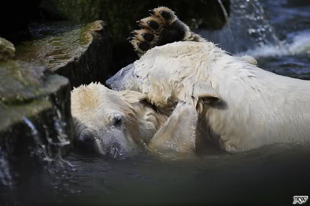 Es ist doch wirklich schön, die beiden Eisbär-Teenager zu sehen, und Knut wieder in seiner herrlichen Farbe!! Mir gefällt er da ganz besonders gut! SylviaMicky, Deine Fotos sind Klasse! Natürlich sind auch Monikas Bilder sehr schön und die von Jessie und Doris, das wißt Ihr alle selbst ganz genau, man kann sich eigentlich nicht genug satt sehen davon. Die Videos von Monika schaue ich mir die nächsten Tage einmal an, da freue ich mich dann schon darauf, das ist eine tolle Sache, wenn man *in der Ferne* die bewegten Bilder sehen kann.