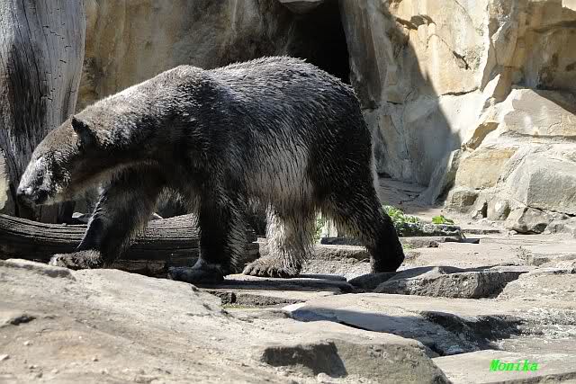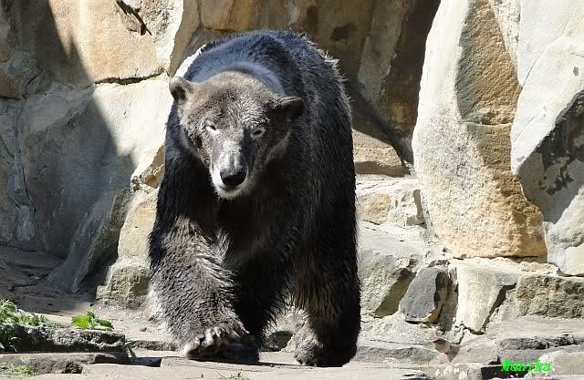 Heute morgen guckten beide Bären interessiert als die ersten Besucher kamen. Erst kam Gianna und begrüßte uns und dann Knut. Die Beiden müssen zuvor schon im Wasser gespielt haben, denn das Fell war noch nicht ganz trocken.