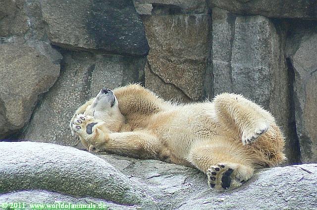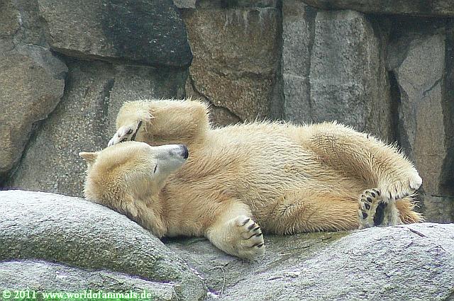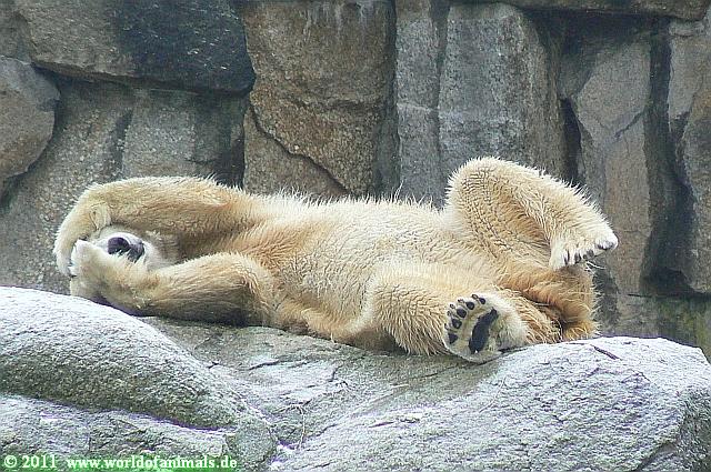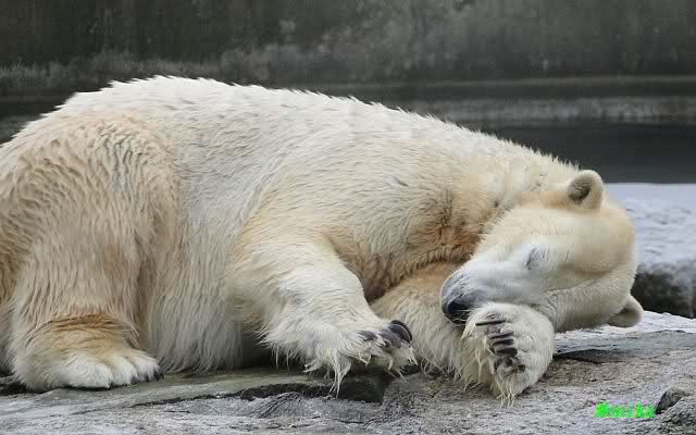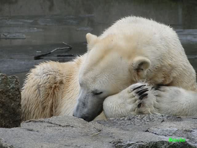 Guten Abend an alle Knut & Co Freunde in Nah und Fern. Ich habe es tatsächlich geschafft heute mal gegen 10:40 h im Zoo zu sein. Mit meinen Fotos, die ich mitgebracht habe, fange ich dort an, wo Monikas Serie aufhört: Mit der Siesta.