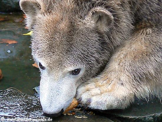Auch eine dumme Unsitte von Besuchern ist es, an die Scheiben zu klopfen, damit der Bär reagiert. Besonders wenn er im Wasser ist und dann ganz dicht an den Scheiben aus dem Wasser herauskommt, mit seiner Schnauze an die Scheiben knallt. Verletzungen sind dadurch sogar möglich.