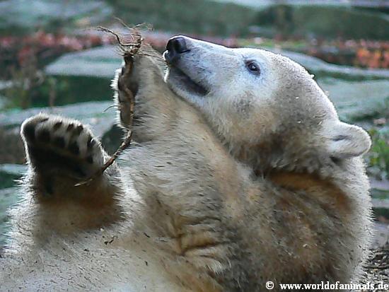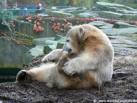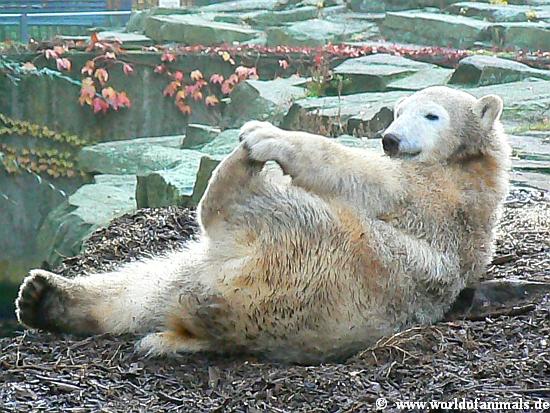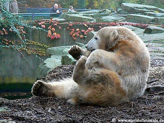 Okay, Knut ist ein Eisbär, 100 Kilo schwer. Aber wenn er auf seinem Mulch Bett liegt und mit einem Zweig, einer Wurzel wie ein kleines Kind spielt, dann sind Jung oder Alt, Frau oder Mann, die Kinder sowieso absolut in seinem Bann, verzückt und können sich nicht von ihm trennen. Die folgenden Fotos benötigen keine Worte....