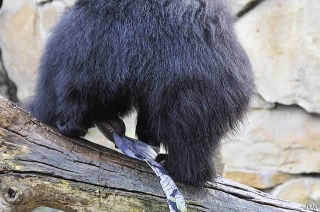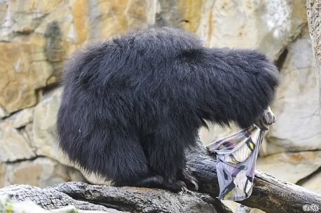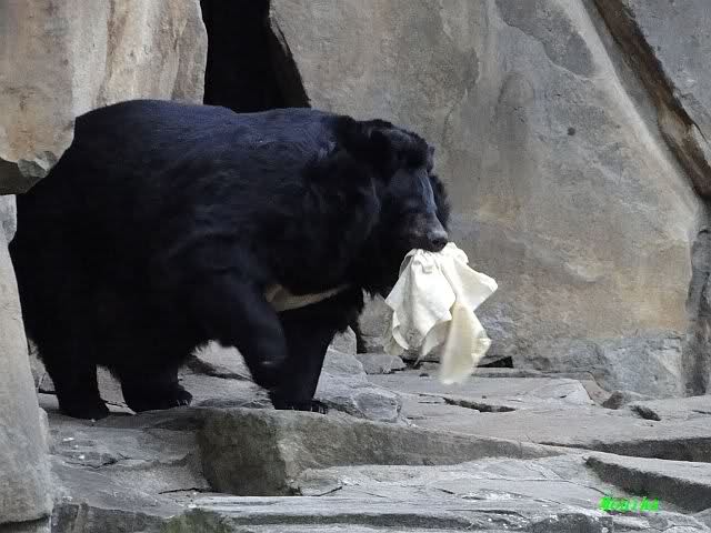 Als ich heute Morgen Richtung Eisbären ging, war der Kragenbär bereits auf der Anlage und gerade dabei ein großes Tuch zu zerfetzen. Auch Devi flitzte schon über die Anlage in ihre Höhle.